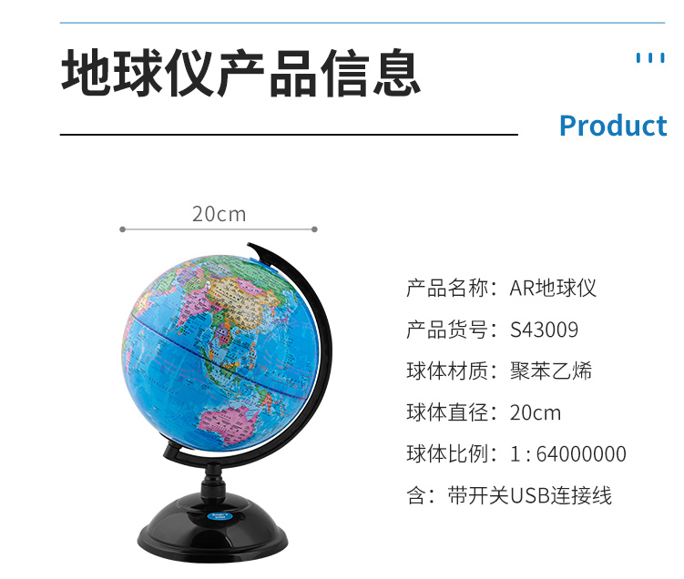 • 广博S43009智能AR语音地球仪 直径20cm