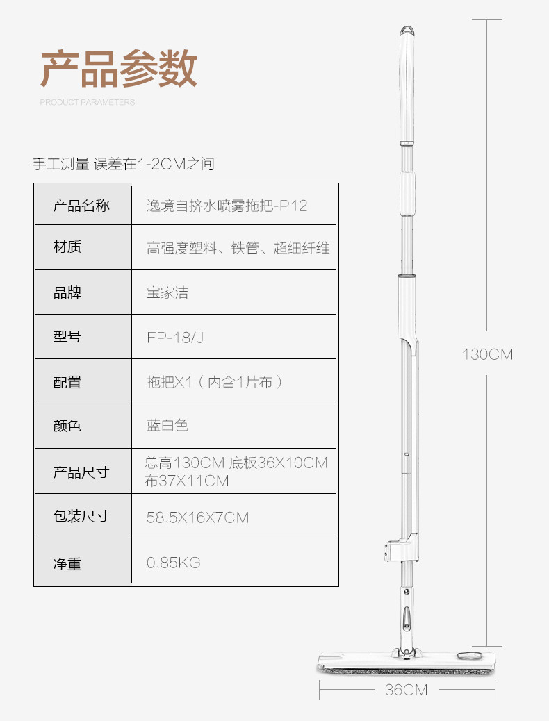 宝家洁JY8730平拖把50CM