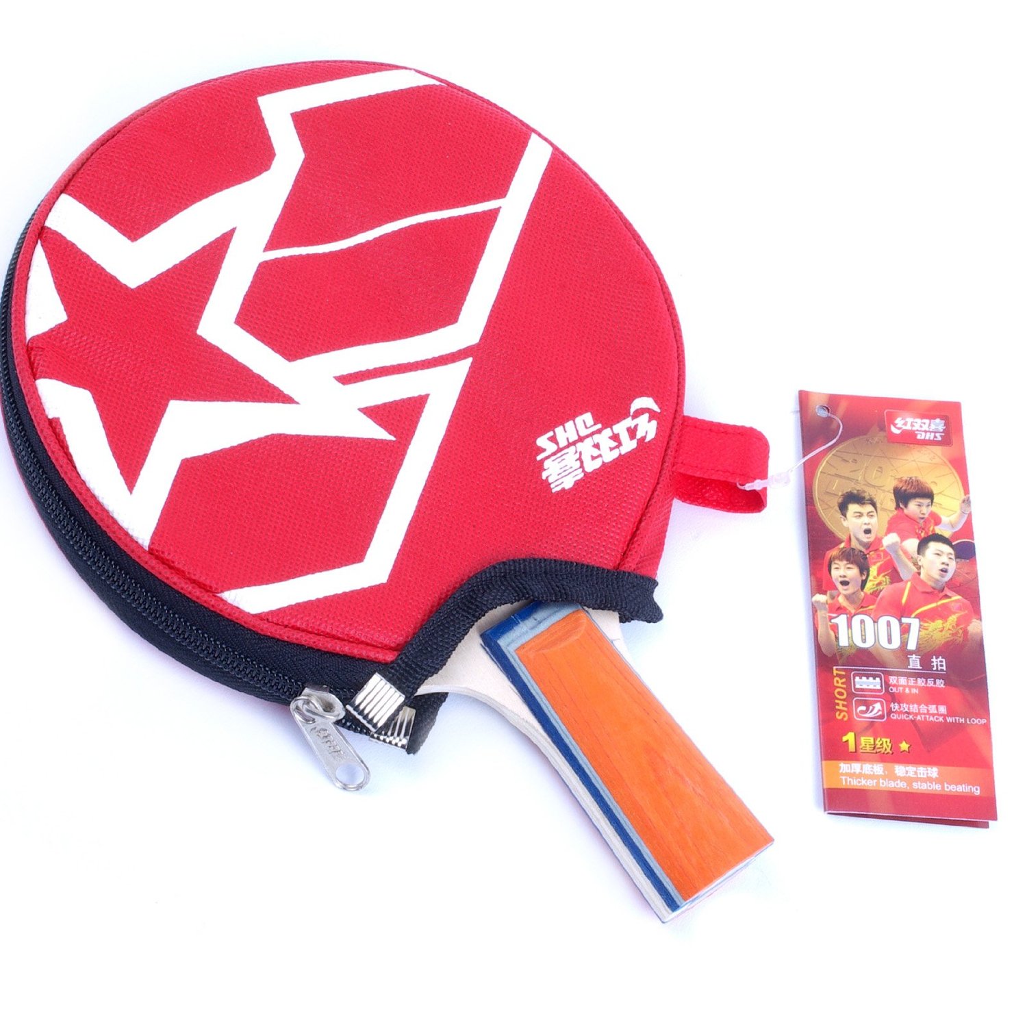 红双喜(DHS) 双面长反胶乒乓球拍 型号:直拍 R2007