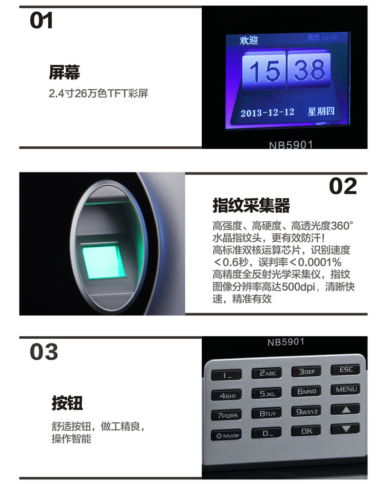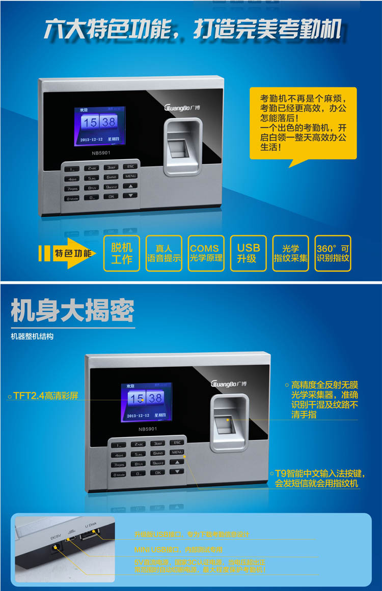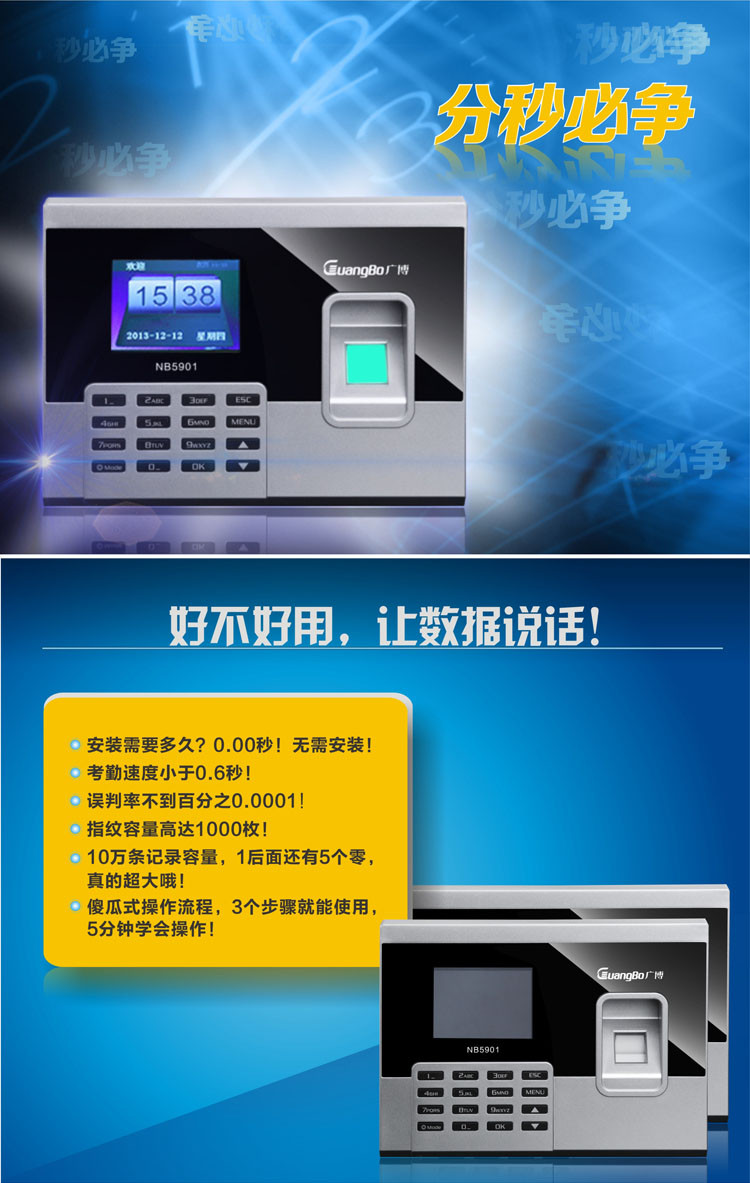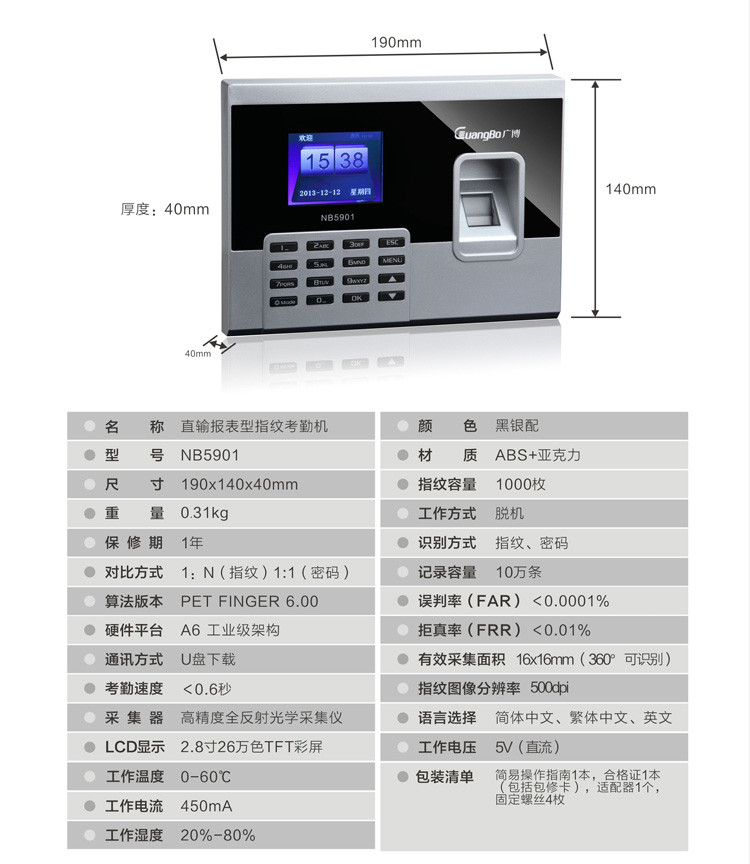 广博NB5901指纹考勤机直输报表型(1000枚)