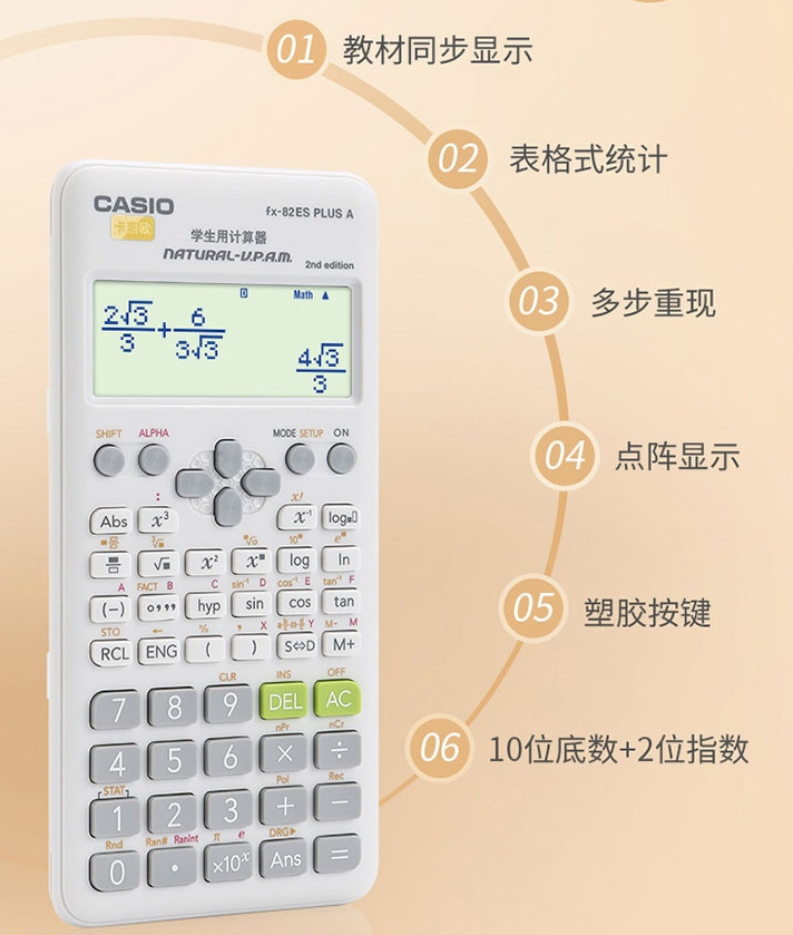 卡西欧FX-82ES计算器PLSA2WE 白色