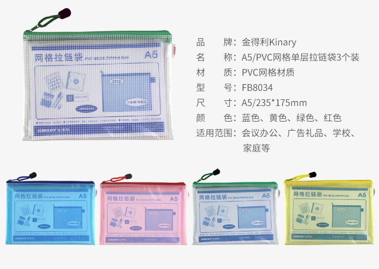 金得利FB8034网格拉链袋A5