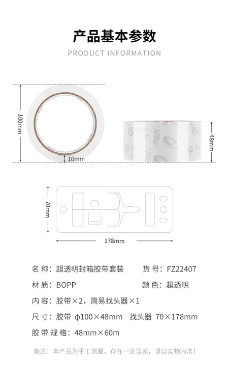 广博FZ22407超透明封箱胶带套装50um*48mm*60y
