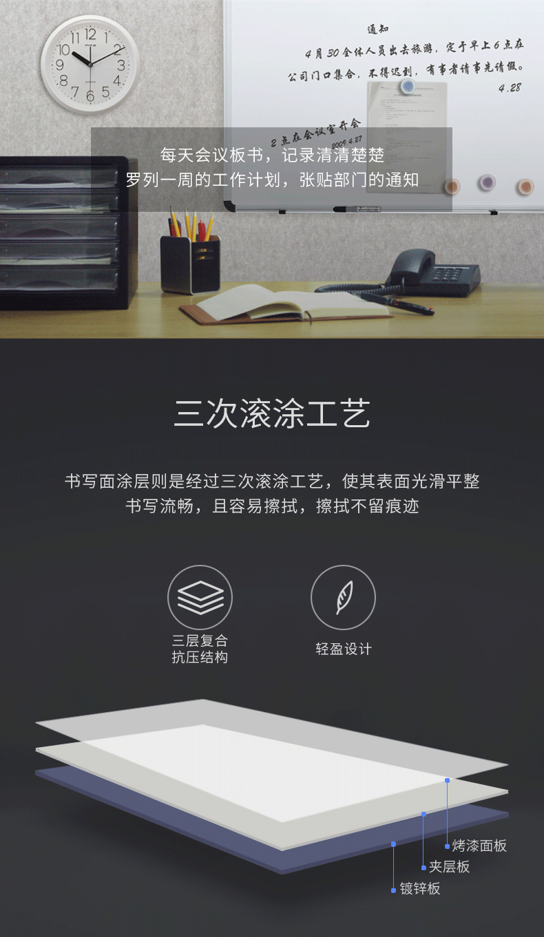 得力7852挂式白板400*600mm