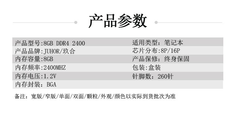 玖合DDR4 2400笔记本电脑内存条8G 黑色