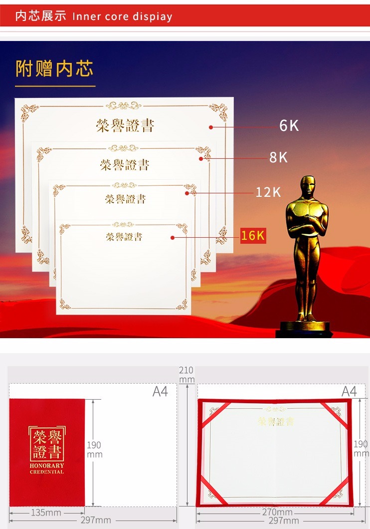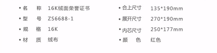广博ZS6688-1荣誉证书16K绒面