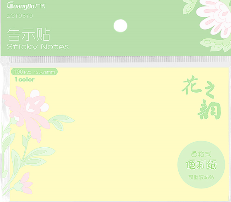 广博ZGT9379黄色告示贴76*125mm 100张(包)