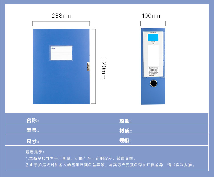 广博A6751档案盒100mm蓝色