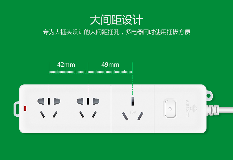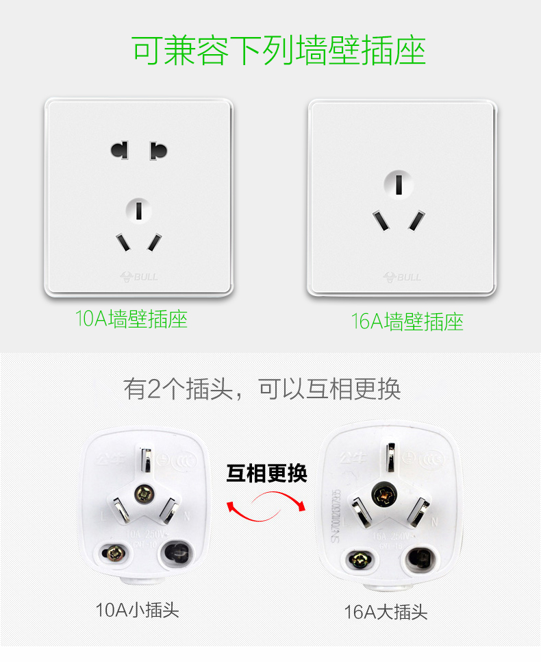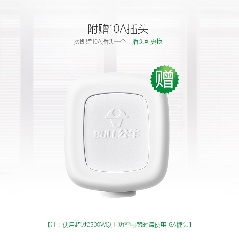 公牛插线板GN-609 3m 6位总开 插座/插排/插线板