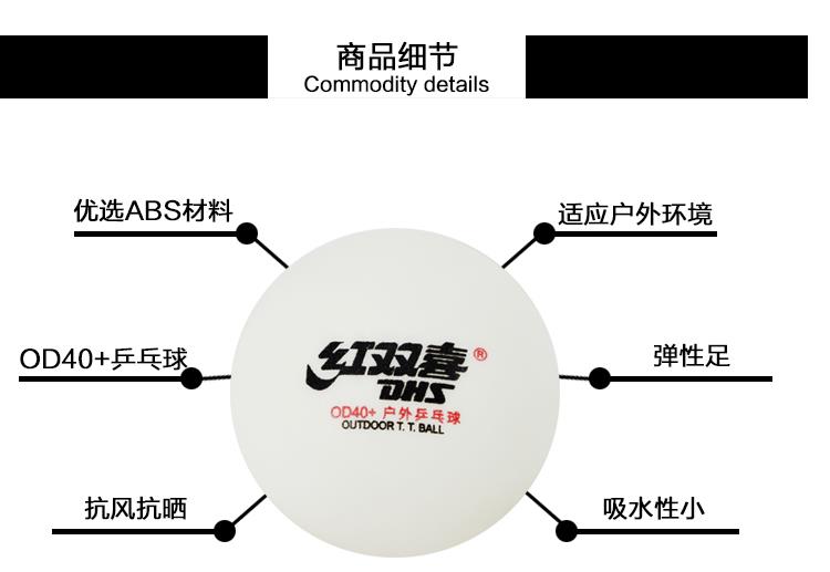 红双喜OD40户外白色乒乓球(10只装)