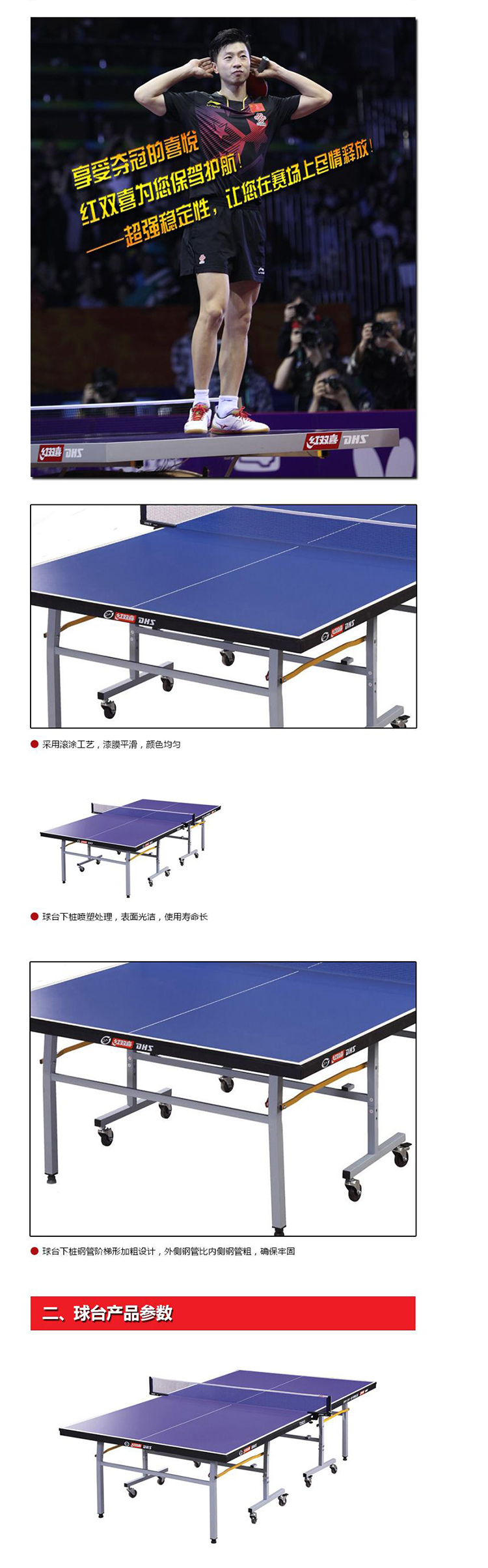 台面采用特别研制的“新蓝”色,减少台面材料颜色对运动员的“视觉干扰”