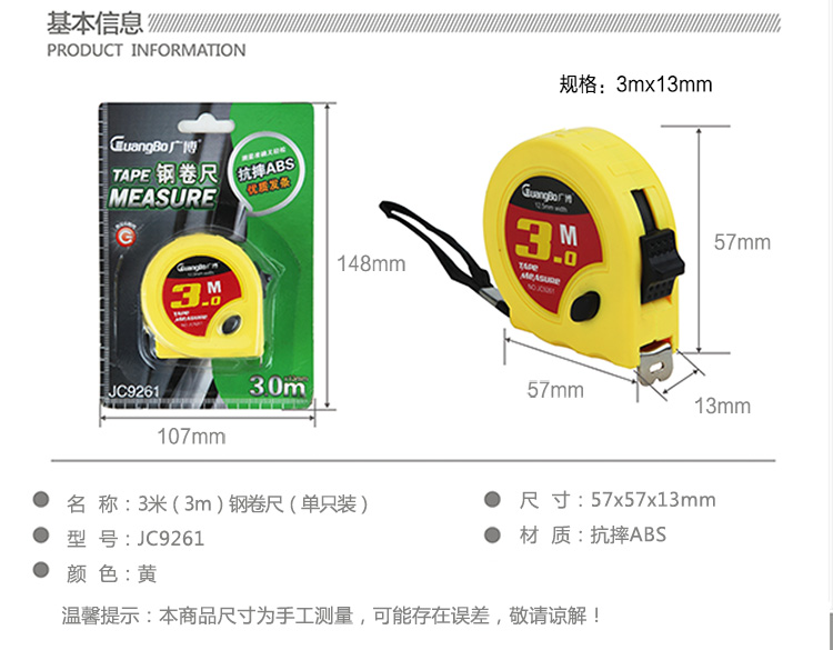 广博JC9261钢卷尺3m-13mm