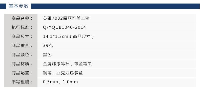 英雄(丽水)7032黑丽雅美工笔(明尖)