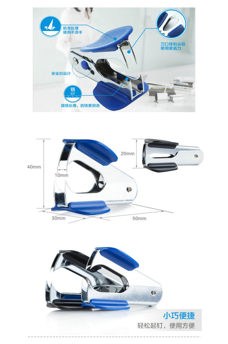 此款起钉器适用起书钉种类,轻松起钉,使用方便