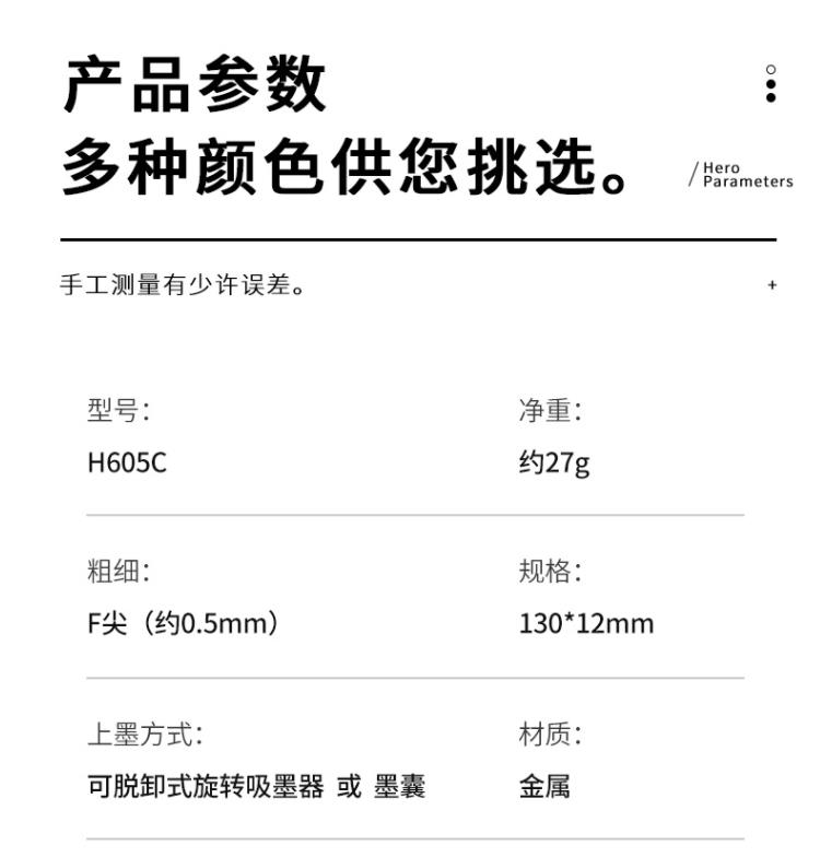 • 英雄(稳滢)H605C英雄黑零件铱金笔(旭日红)铱金204礼盒
