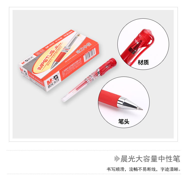 晨光 M&G GP1111 大容量中性笔/水性笔 0.7MM 12支装 红色