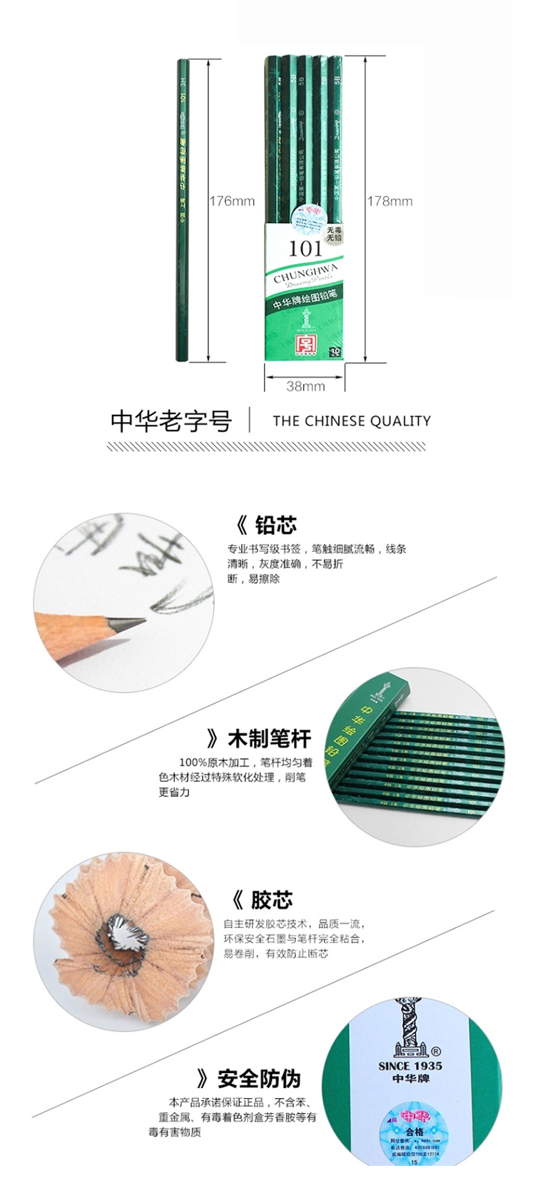 商品信息采用进口木材及铅芯,设计及美术绘图使用首选。