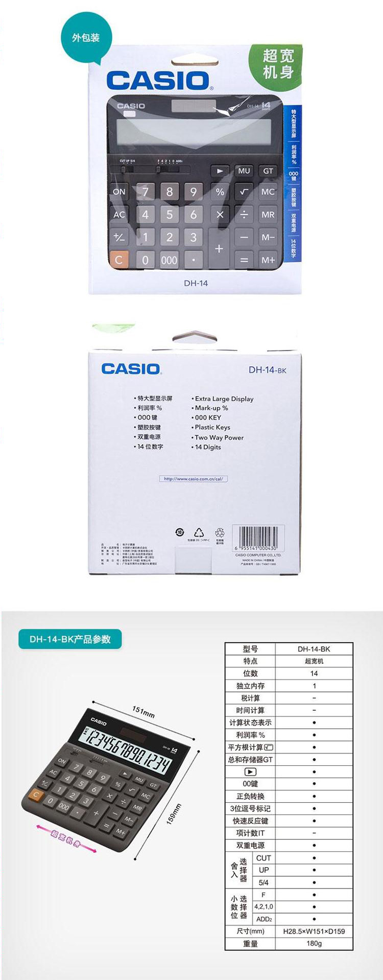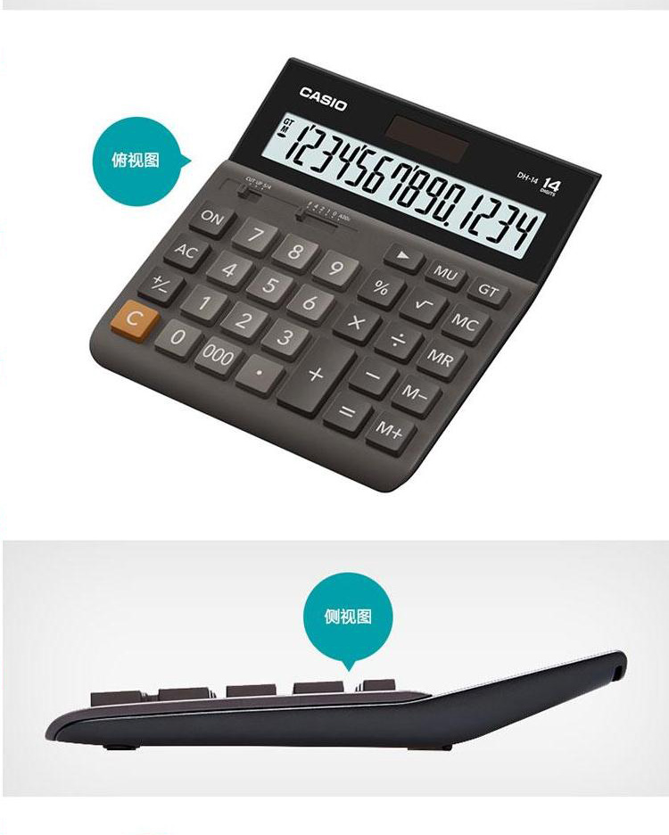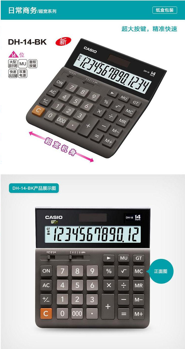 12位数字 大型显示屏 双重电源,新摇头设计随意调节,屏幕清晰显示,耐久型金属面板 中型台式机。