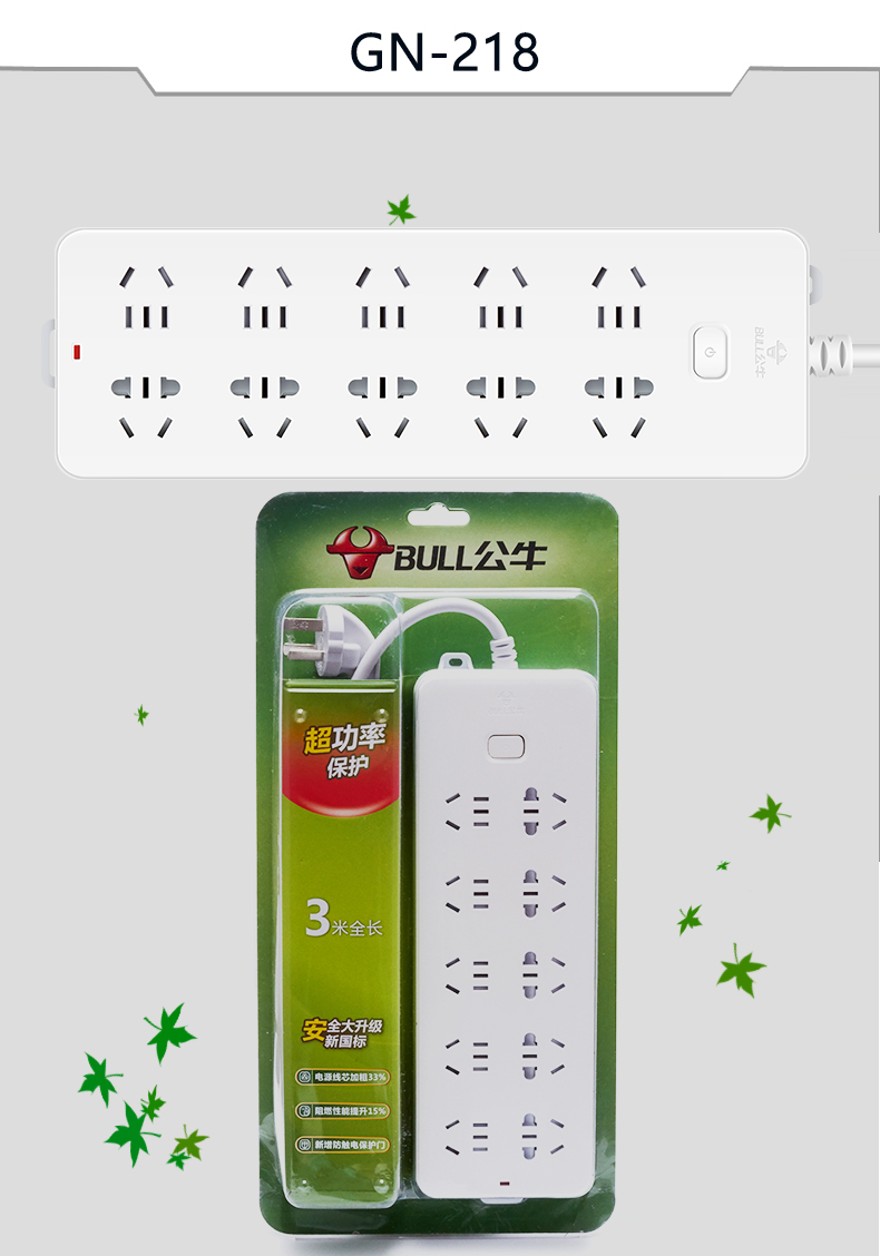 公牛(BULL) 插座 GN-218 10位总开 5M