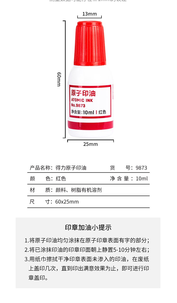 得力9873原子印油蓝色