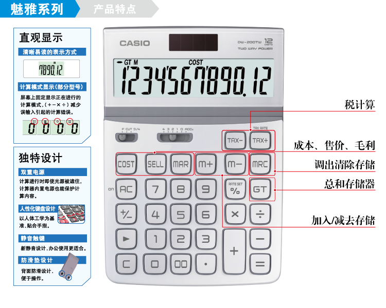 卡西欧计算器自进入中国市场,十多年来始终坚持永不止步的技术创新,实现对品质的不断完善,每一年都力求创造更多更卓越的产品,满足消费者的各种需求!