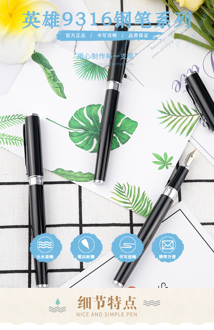 &*英雄9316纯黑亮铬铱金笔(明尖盒装)