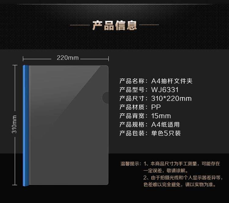 广博文件夹 WJ6331 抽杆 单色透明