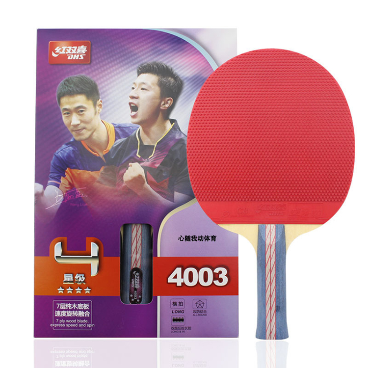 专业级7层纯木底板,以轻质高强木材为主要构成,辅以红双喜经典弧圈型套胶