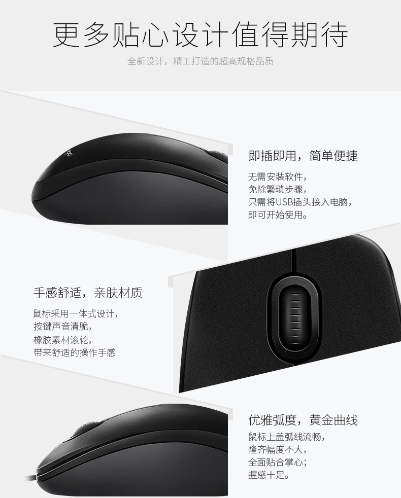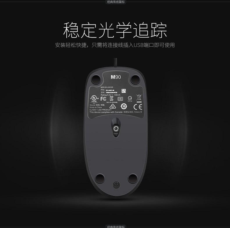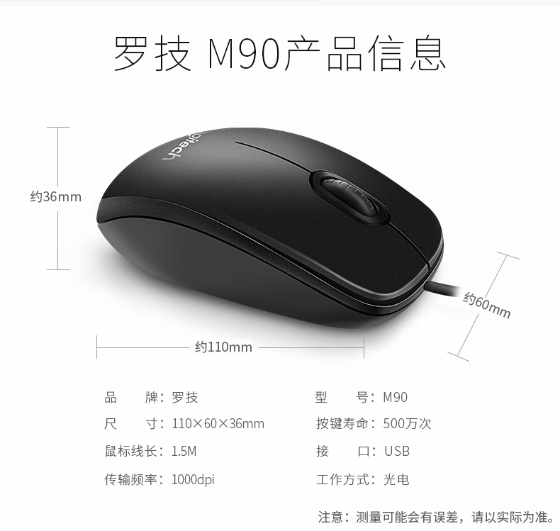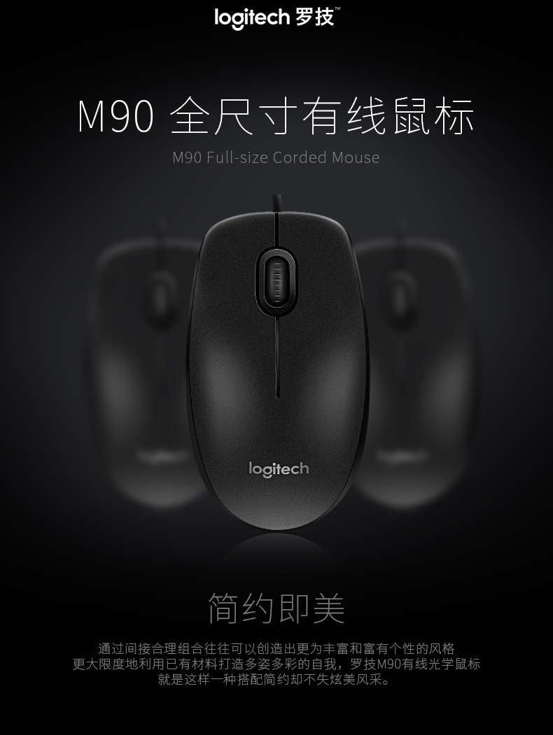 罗技M90鼠标有线 黑色