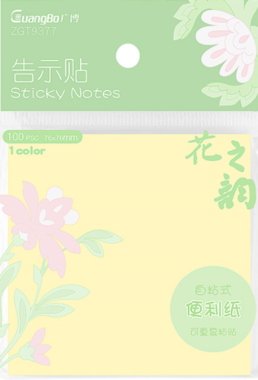 广博ZGT9377黄色告示贴76*76mm 100张 (包)