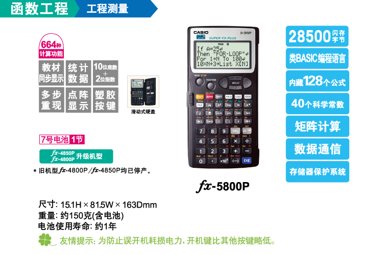 卡西欧FX-5800P 函数工程计算器高效编程,适用工程类专业学生和测绘人士使用!