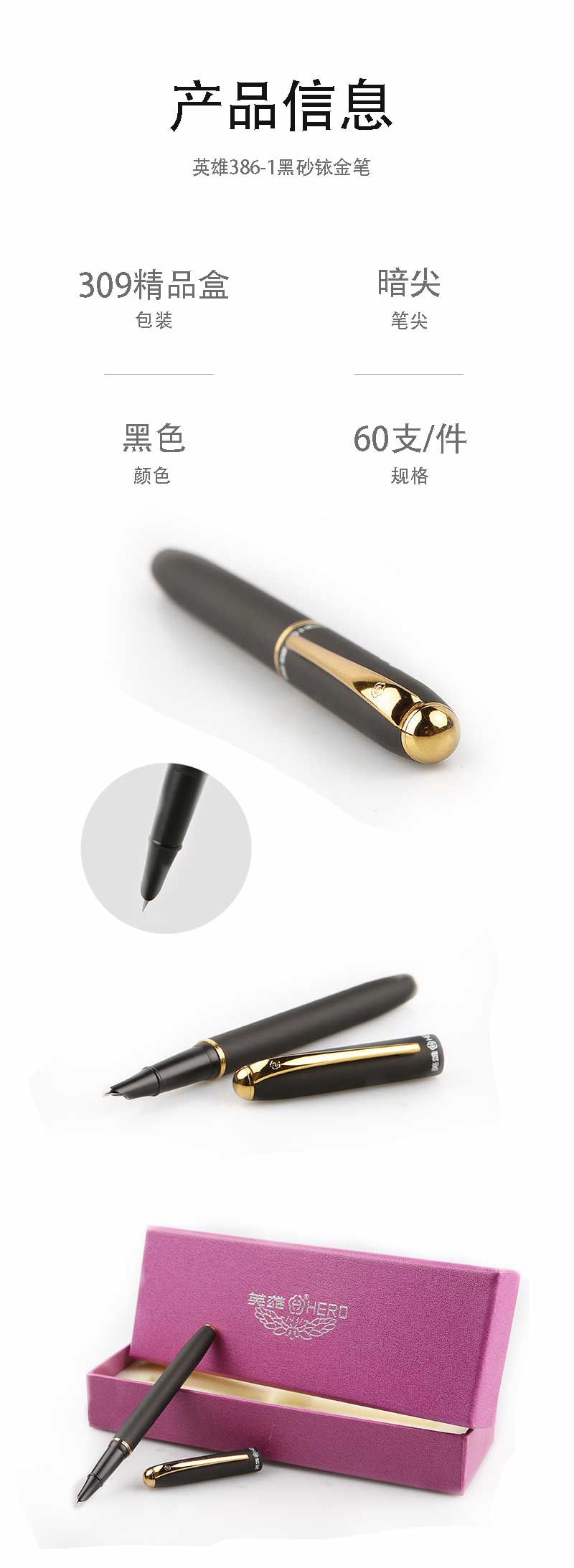 英雄386-1黑砂高级铱金笔(暗尖)