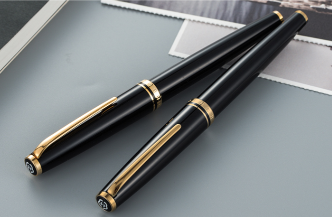 英雄(上海)979黑漆套杆真空度金铱金笔