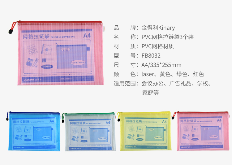 金得利FB8032网格拉链袋A4