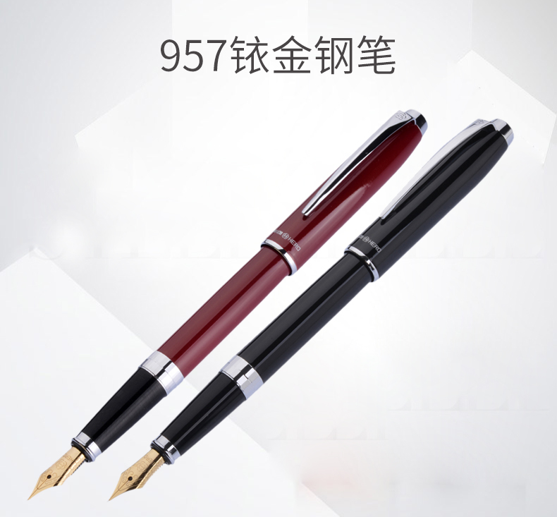 &*英雄957拉菲红漆套杆亮铬零件高级铱金笔