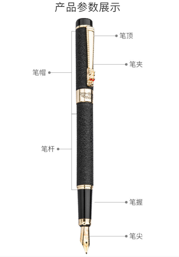 &*英雄739亮铬夹铱金笔(黑、白、蓝)