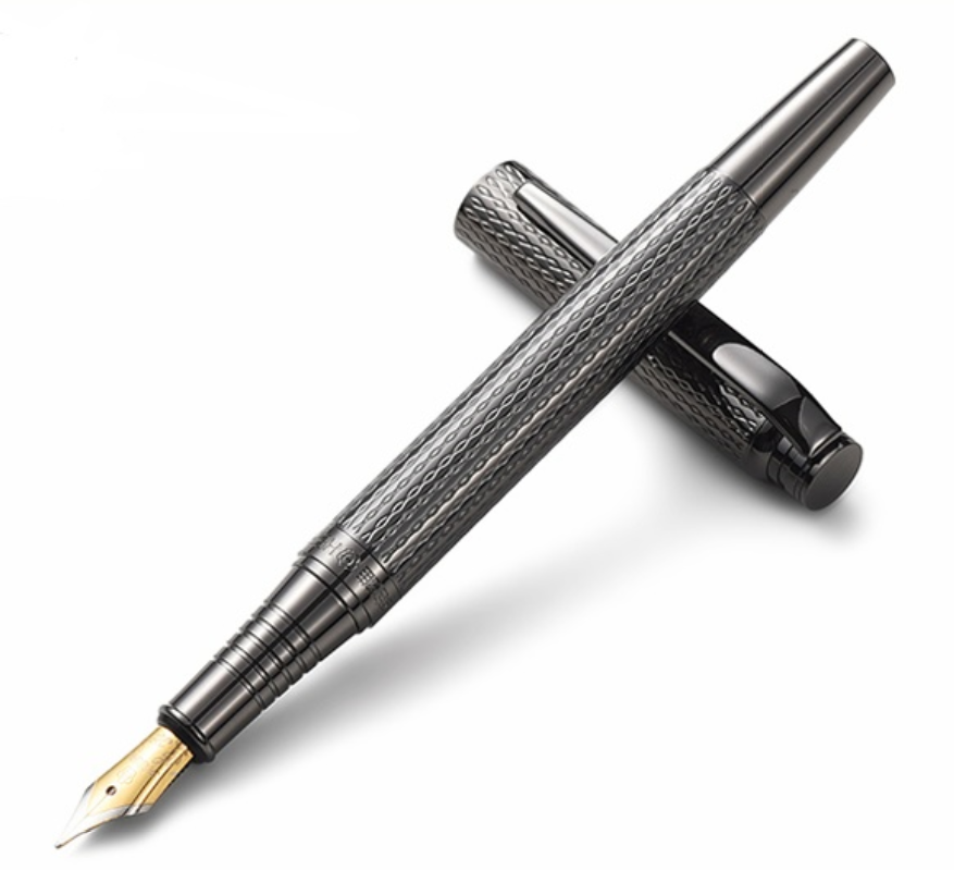 英雄775刻花铱金笔枪灰