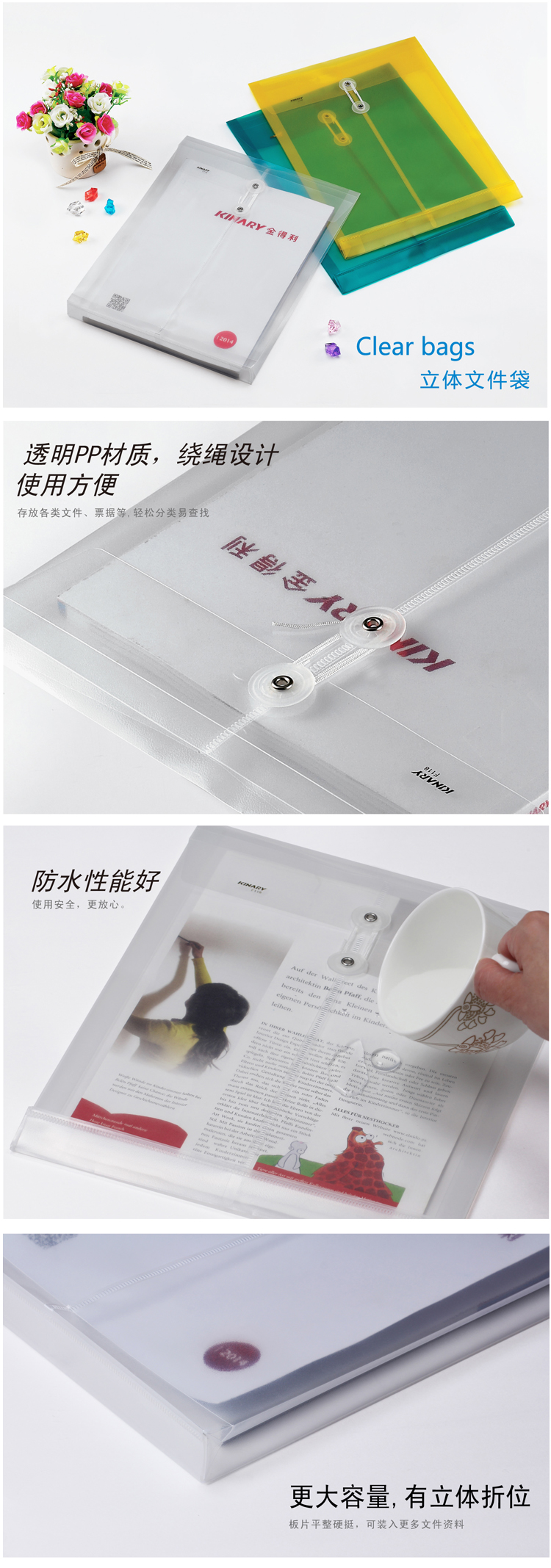 金得利F118绳扣立体档案袋A4