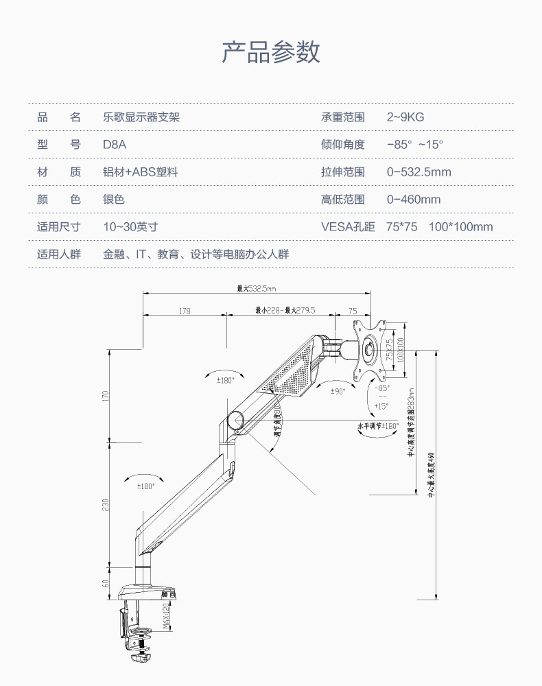 乐歌A8D双屏桌面架显示器支架臂