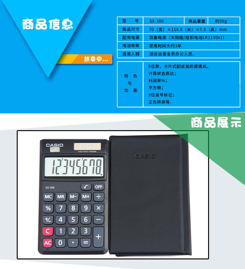 卡西欧(CASIO)SX-300 8位数显便携式计算器