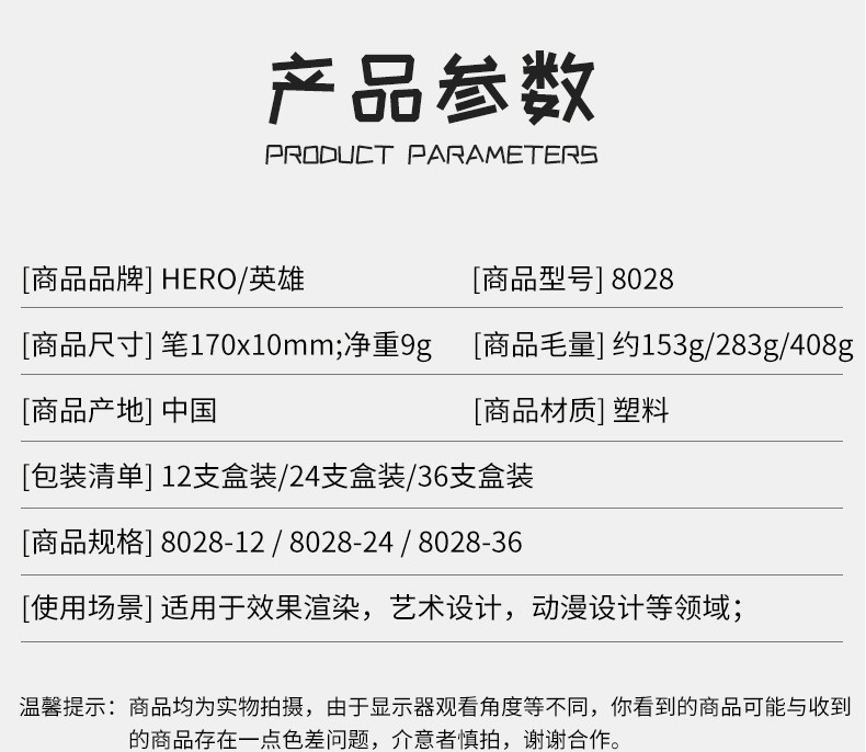英雄(华立)8028-12双头彩色软笔(12色)