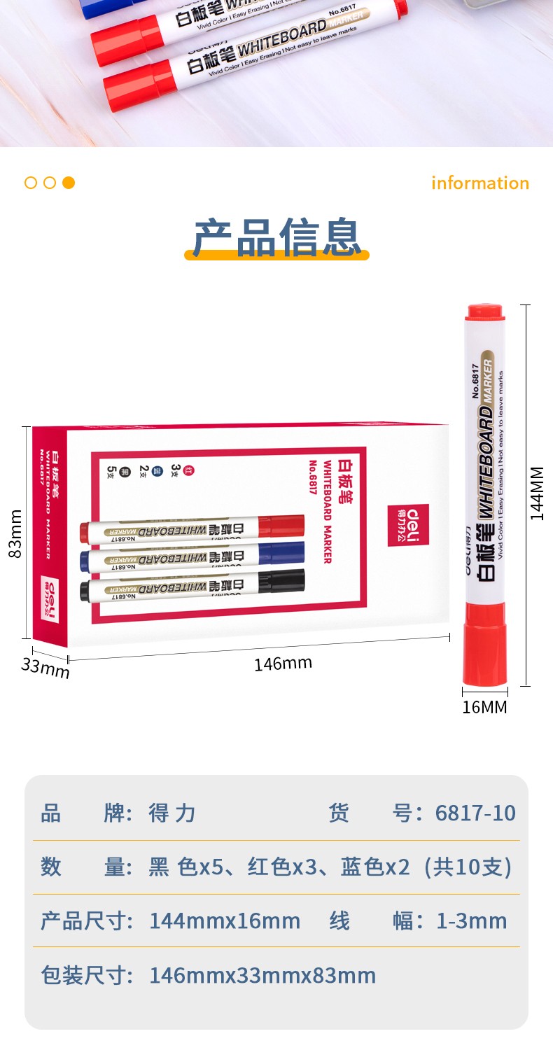 得力6817白板笔黑色 单支装 (一盒需下单10支)